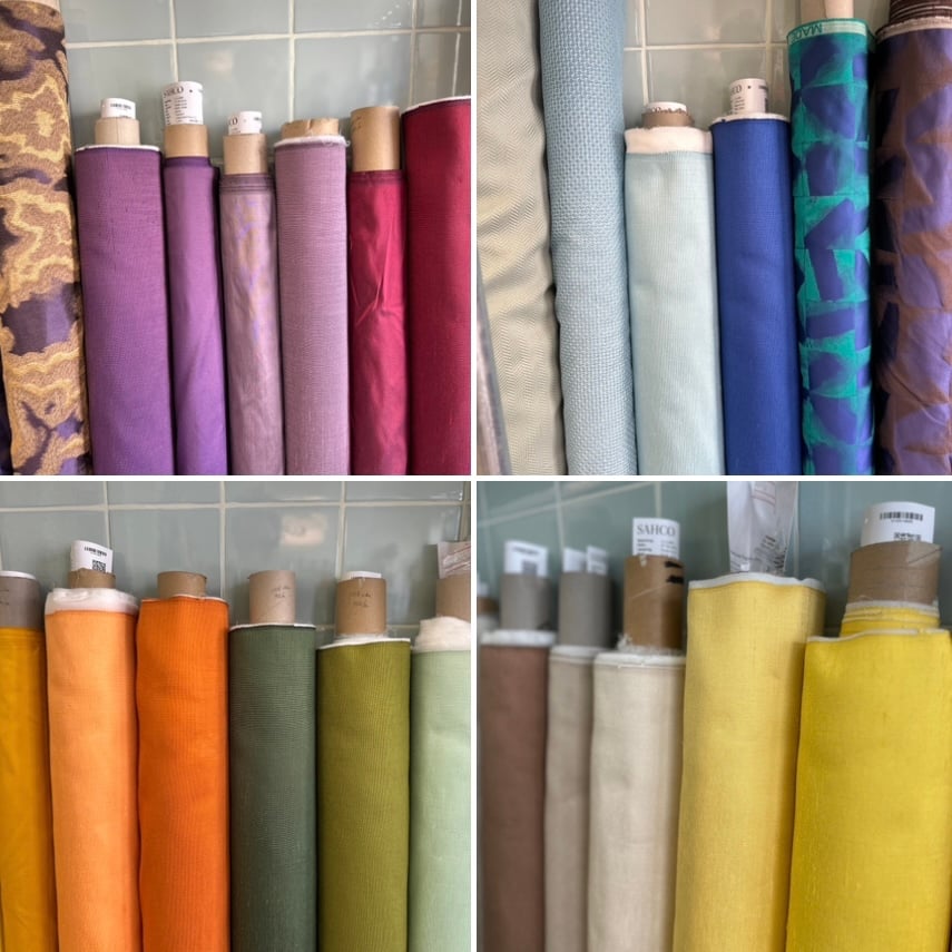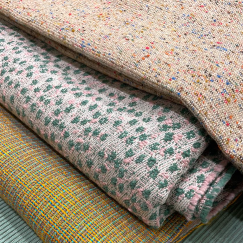 Bomull/lin kommer fra Krivi Vev, Almedahls, Borås Cotton og mye er vintage tekstiler fra Sandvika Veveri.
