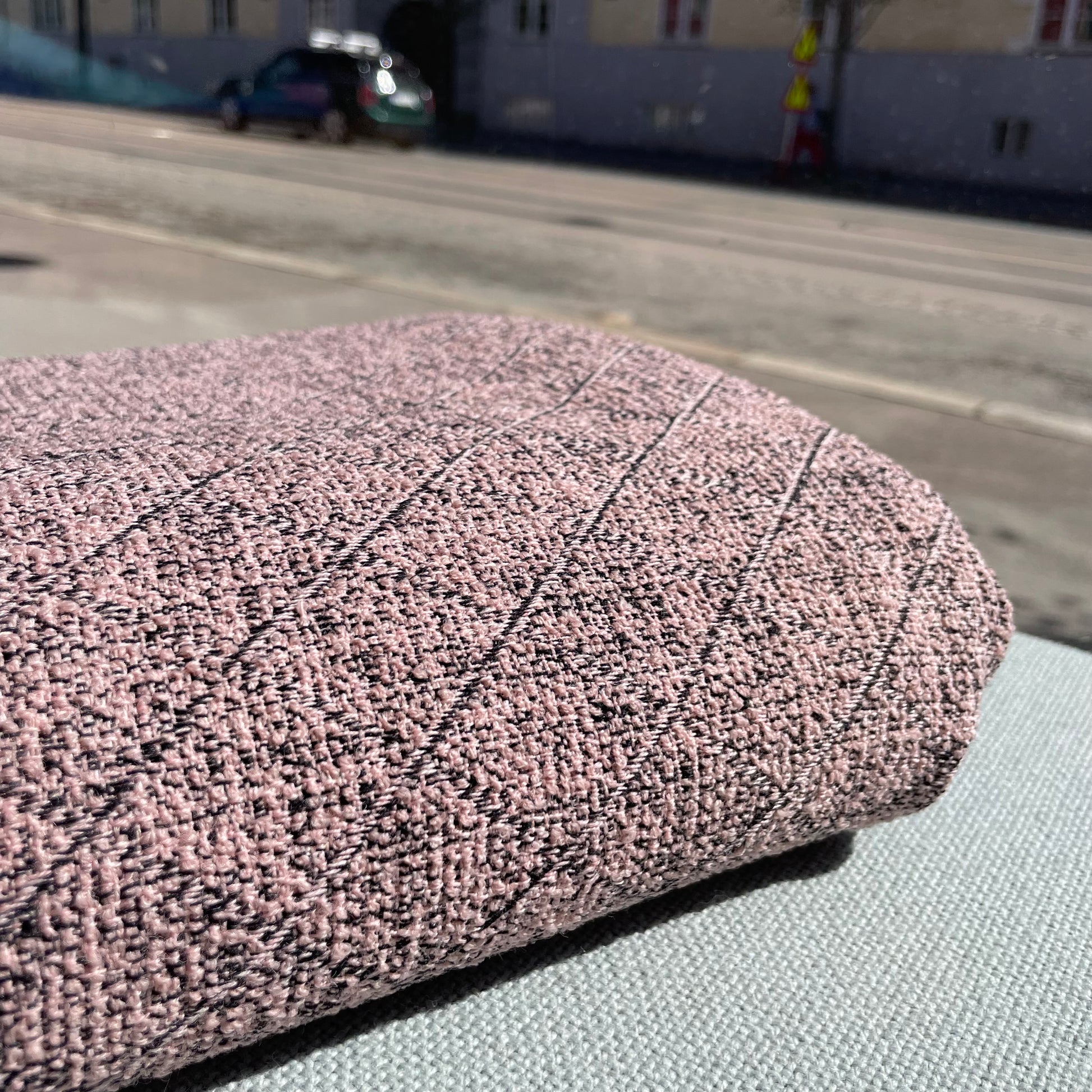 Rosa (0555) er en støvet og elegant nyanse, myk i uttrykket og dempet med et hint av sort. Kontrasten gir tekstilet dybde og karakter, samtidig som helheten oppleves rolig og sofistikert.